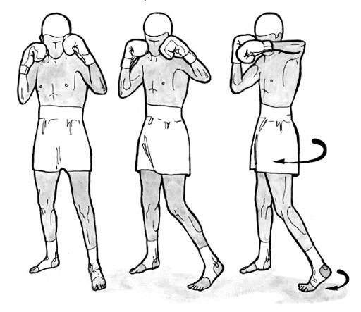 Туловище боксер вращает в сторону, разноименную бьющей руке. Вращение он совершает в тазобедренном суставе ноги, на которую перенесен вес тела.