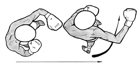 В последнем случае этот удар, противопоставляемый прямому удару левой противника, выполняется так: навстречу противнику, атакующему прямым левой, боксер делает шаг вперед-влево с небольшим уклоном влево; одновременно он наносит удар сбоку правой рукой, кулак которой, поверх бьющей руки противника, направляет в голову, а локоть руки, наносящей перекрестный удар, поднимает кверху. Этот удар очень эффективен и служит прекрасным средством контратаки против прямых ударов левой.
