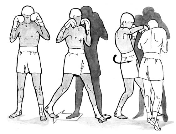Исполнение. Из положения боевой стойки первой скользит левая ступня, за которой тотчас же следует правая ступня. Колени должны быть расслабленными. Корпус на все время движения сохраняет устойчивое положение. Увеличивая или уменьшая длину шага, боксер регулирует расстояние между собой и противником.