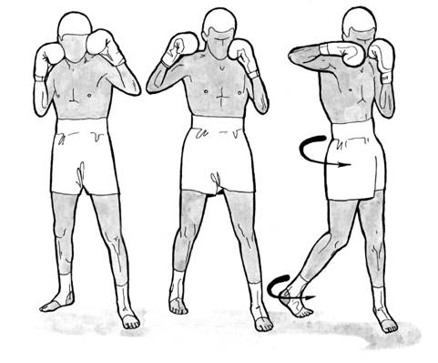 Туловище боксер вращает в сторону, разноименную бьющей руке. Вращение он совершает в тазобедренном суставе ноги, на которую перенесен вес тела.