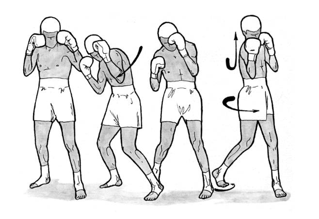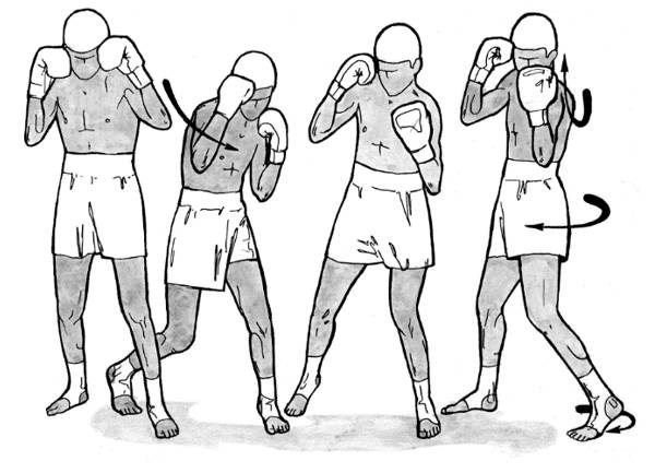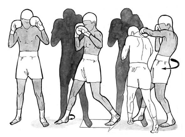 Используется для того, чтобы уйти от более сильного правого удара и принять удобное положение для проведения левого хука и левого прямого. Это движение безопаснее, чем движение влево, но труднее в исполнении.