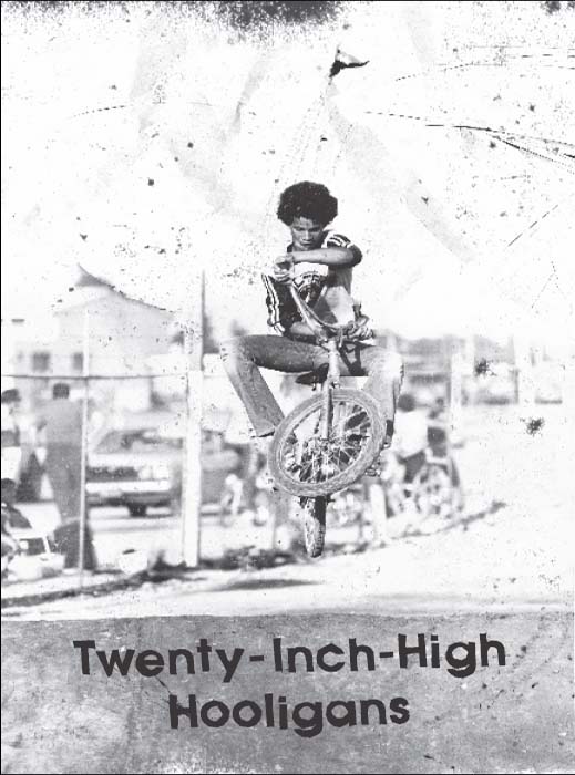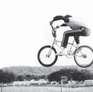 We’d ride this dirt track out in the Valley, by the youth center in Reseda. It was about fifteen miles away from Hollywood, which is an ambitious goal on a BMX bike. We used to hitch rides on bumpers over Laurel Canyon Boulevard to cut down on our travel time. It’s nothing I’d advise, but we treated passing cars like seats on a ski chairlift: we’d wait on the shoulder, then one by one we’d grab a car and ride it up the hill. Balancing a bike, even one with a low center of gravity, while holding on to a car driving thirty or forty miles an hour is thrilling but tricky on flat ground; attempting it on a series of tight uphill S curves like Laurel Canyon is something else. I’m still not sure how none of us were ever run over. It surprises me more to remember that I did that ride, both up and down hill, without brakes more often than not. In my mind, being the youngest meant that I had something to prove to my friends every time we rode: judging by the looks on their faces after some of my stunts, I succeeded. They might have been only teenagers but my friends weren’t easily impressed.
