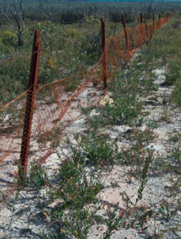 Old rabbit-proof fence remains along Hamersley Drive, Fitzgerald River National Park, Western Australia.