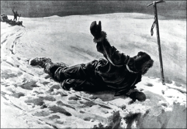 That left Douglas Mawson to trek the last 160 km (100 miles) alone. At one point he tumbled into a deep crevasse. He was only saved from plummeting to certain death by his sledge, which jammed itself into the ice above him. He then hauled himself back up the slender rope that attached him to the sledge.