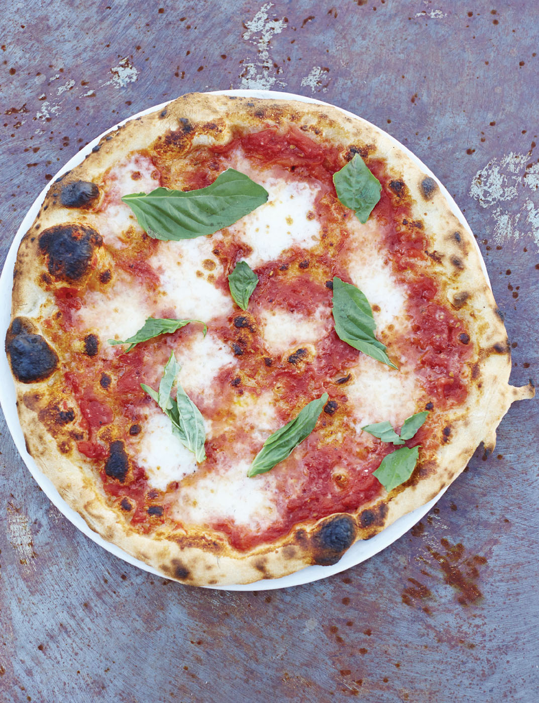 The Margherita is perfect as is, but it’s also a perfect canvas for other ingredients. Just remember that when you add or remove something from a pizza, you need to accommodate for that gain or loss, be it a matter of texture, moisture, flavor, or the like. For example, adding ricotta cheese could make your pizza more watery, so you’d want to use a little less tomato sauce to balance things out.