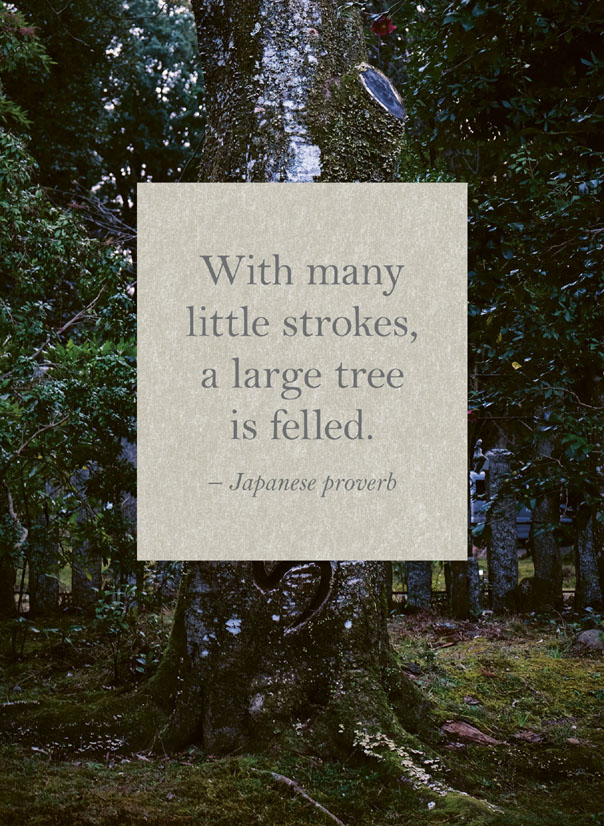 This book is packed with practical tips, suggestions, recipes and more to enhance your current existence – all inspired by the unique, beautiful and magical little islands that are Japan. Just think of the ingredients we used to have to ship over (at great expense), which can now be readily purchased at many local supermarkets; and the intricate bento boxes (painstakingly made for me by my mother), which are now fairly commonplace. These and so many other things are at our disposal now, and by using them, along with making tiny, incremental changes, you will learn how to establish new routines and habits to enrich and complement your lifestyle and wellbeing. This proverb pretty much sums up the thinking that underpins this book. It’s through small, iterative steps, rather than the big reveal, that we can make the most significant changes. So take things one step at a time. Many of the arts and practices you will read about, like ikebana (see here) and tea ceremony (see here) take decades to grasp and perfect. Several of my family members have sacrificed countless hours in following and, ultimately, mastering their chosen pursuits, but while I’ve dipped my toe into many of them, I am by no means an expert. Nor am I a historian or an academic. But through all of them, I have learned something about myself along the way – and that is what I want to share here. Because if I can do it, then so can you. The hobbies, activities and practices you will read about will all help to create change; change – and this is key – that is realistic, practical, affordable and, hopefully, fun, too.