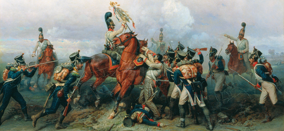 The Exploit of the Mounted Regiment (1884), by Russian military artist Bogdan Willewalde (1819–1903), depicts an episode during the Battle of Austerlitz in December 1805 between the French armies of Napoleon and the forces of Alexander I of Russia and Francis I, Habsburg ruler of the Austrian Empire. Even battles on this scale became a series of small engagements that merged together into the larger conflict.