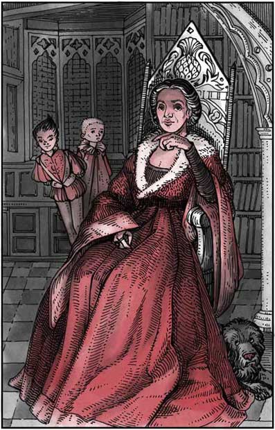 По каменному полу застучали когти, и к Королеве подошёл большой лохматый пёс неведомой породы и грязного окраса. Он посмотрел на принцев из-под косматой чёлки и ухмыльнулся краем пасти. Блеснули белые клыки.