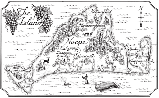 Once, on a stormy night two winters since, when we had toiled through the rain and wind to pull out the boats and lash them safe, we came back to the house with water lacquered to our cloaks and frozen strands of hair clinking each against each as we moved. Our hands were numb as we crammed daub into the cracks and chinks of the house and battled to repair the oil paper that had torn loose on the windows. (We had no glass, then.) Later, as I sat by the fire, the ice melting from my person, the water pooling about my feet, Makepeace asked father the question that was even then forming in my own mind: why was it that grandfather had sought the patent to this island? Why put seven miles of confounding currents between himself and the other English, at a time when there was land and to spare on the mainland for any who wanted to hive out a new settlement?