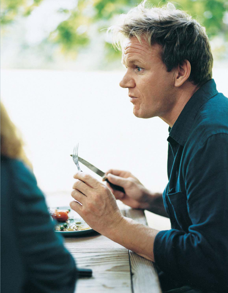 I can’t sit at home with my feet up, reading the newspaper. But having said that, I am beginning to learn about being calm. Everyone always imagines that it must be hectic in the Ramsays’ kitchen, but it’s not. We turn cooking into serious fun. To an extent, everything we do is spontaneous. We’re very lucky in that we have some great farmers’ markets nearby. The kids will go and buy cheese, fresh organic chicken, and a selection of the farmers’ vegetables. They become totally involved in the shopping, putting aside a percentage of their pocket money for good measure. They love that.