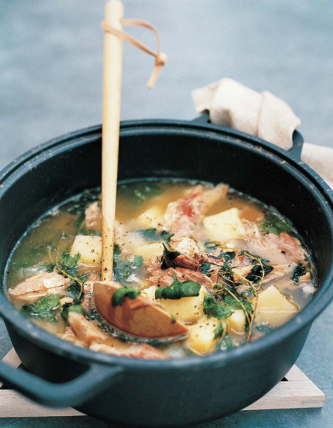 Return the soup to the pan, and taste and adjust the seasoning. If you prefer the soup thinner, loosen the consistency with a splash of boiling water. Reheat gently just before serving. Serve in warm bowls with swirls of cream.