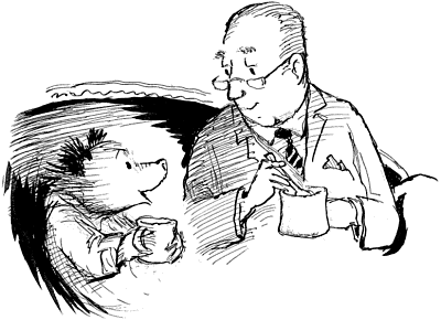 In the case of the Brown family, Mr Brown usually went off to his office soon after breakfast, leaving Mrs Brown and Mrs Bird to go about their daily tasks. Most days, apart from the times when Jonathan and Judy were home for the school holidays, Paddington spent the morning visiting his friend, Mr Gruber, for cocoa and buns.