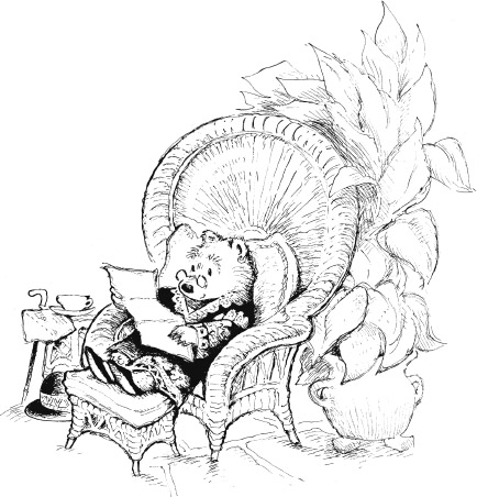 “Thank you, Aunt Lucy,” said the bear, raising his hat. “You are very kind.” He would have preferred cocoa, but he was much too polite to say so.