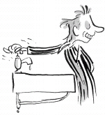 “Mmm…” murmured the old lady, unconvinced. “It’s a bit nippy. I’m just going to put another cardigan on,” she said, even though she was already wearing two. Granny trundled out of the room, quacking as she went.