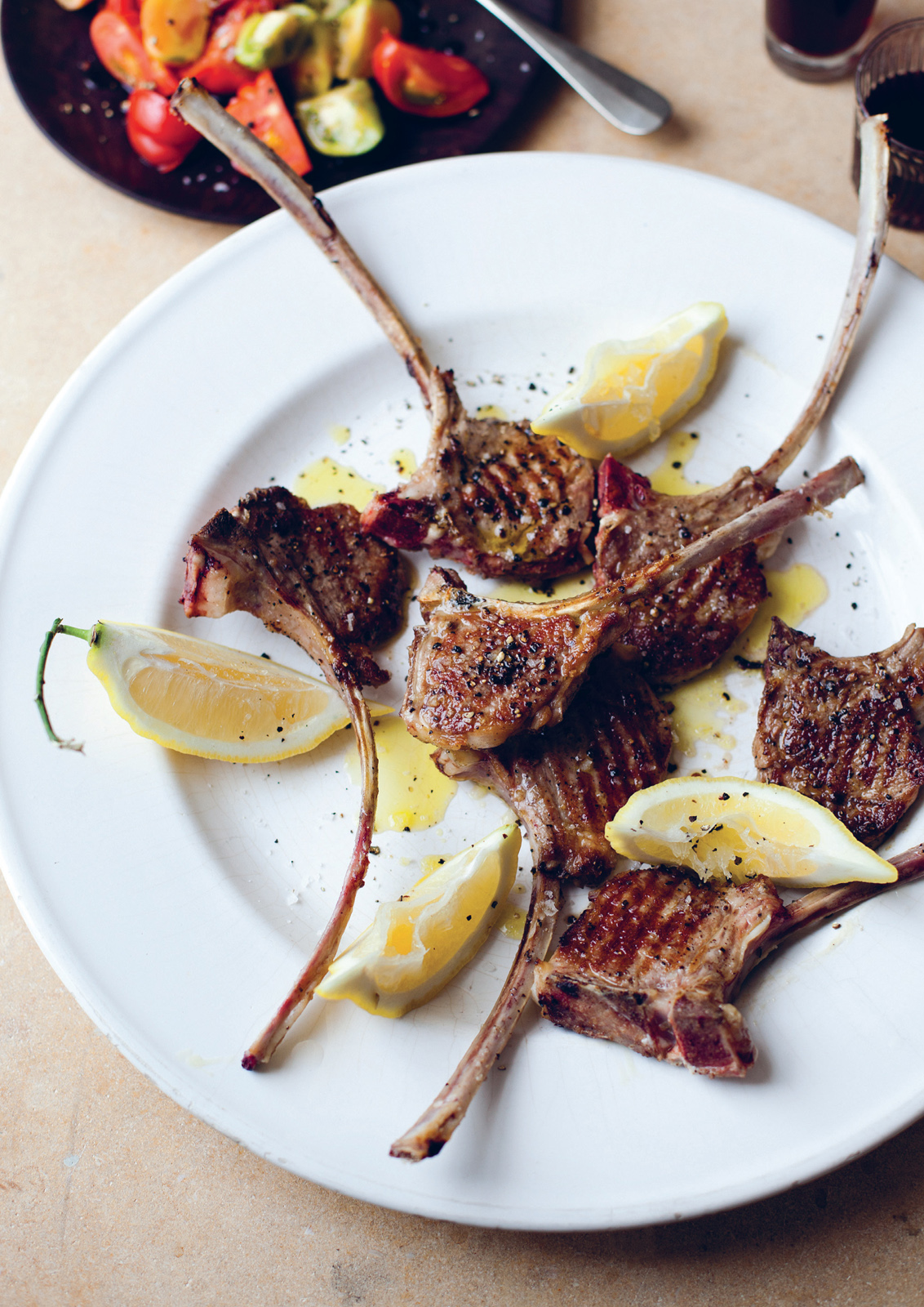 Heat the griddle pan until smoking hot. Season the cutlets with salt and pepper, then place on the smoking-hot grill for 1–2 minutes on each side, pressing them down as they cook. Drizzle with the extra-virgin olive oil, then serve straight away with lemon quarters.
