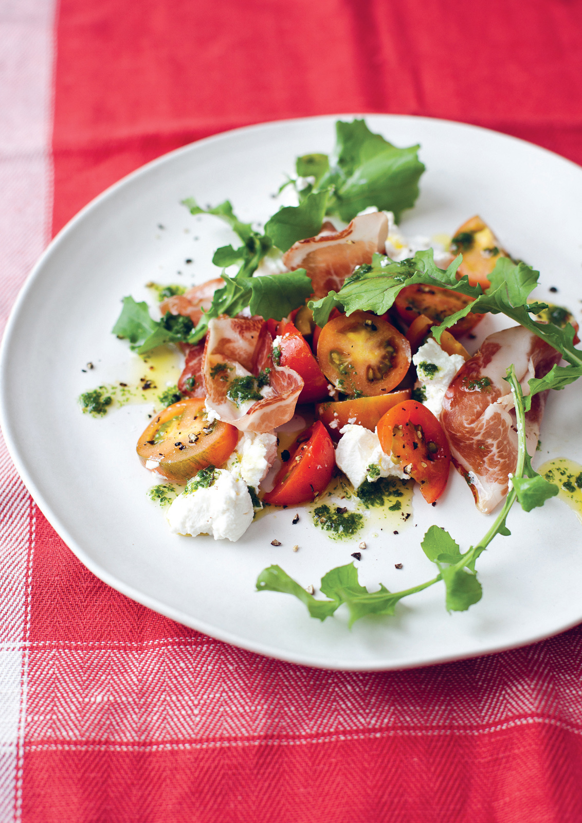 CAMONE TOMATO, COPPA DI PARMA AND RICOTTA SALAD