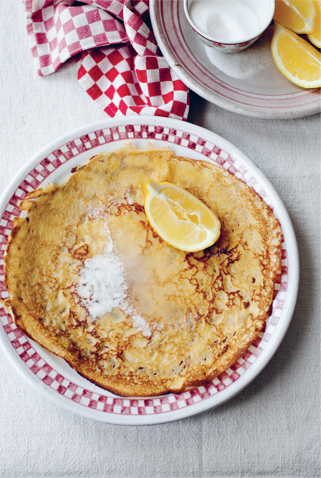 Everyone has their own pancake recipe; this is the one we traditionally make in our family. Rose always made this mixture on Pancake Day or as a quick pudding after supper. The pancakes are very thin and exciting to cook, and are eaten the moment they come out of the pan.