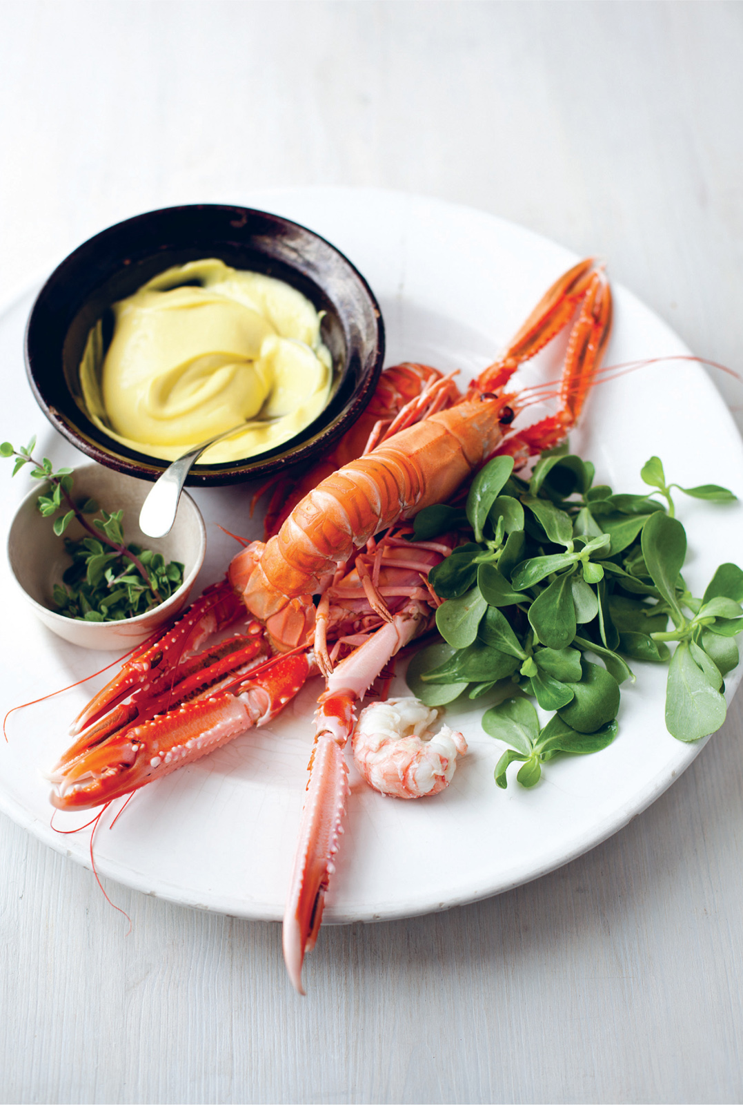 LANGOUSTINES WITH MINER’S LETTUCE (WINTER PURSLANE), MAYONNAISE AND SWEET MARJORAM
