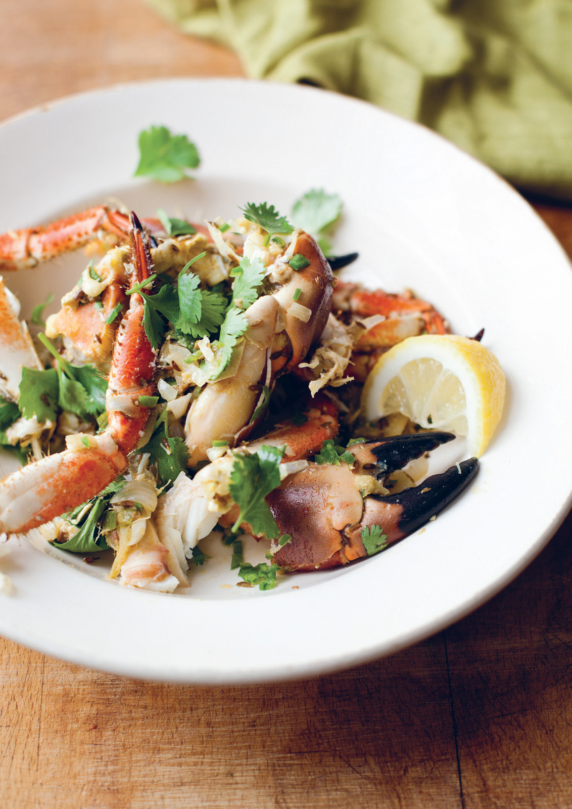 On family trips to Cornwall to stay with Su Rogers, in her house overlooking the Falmouth estuary, there is always an abundance of live crabs and this was often a way of cooking them – relaxed, with everyone going at it to get to the sweet, spiced flesh.