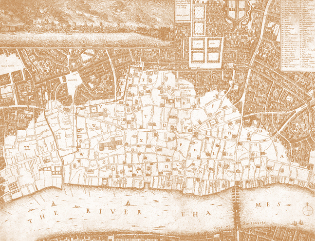 Prelims show ‘A map of the area of London affected by the Great Fire of London in 1666’ © The British Library