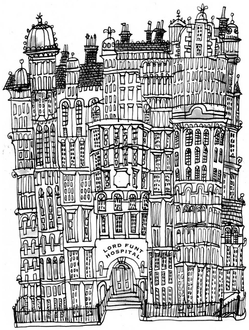 This is LORD FUNT HOSPITAL, in London, England. It was built many years ago and should have been demolished many years ago. The hospital was named in honour of its founder, the late Lord Funt.