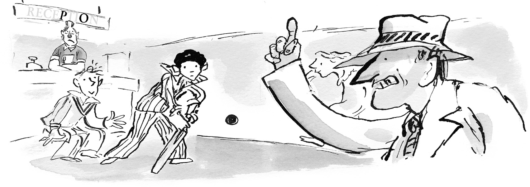 “Oooh!” said Doctor Luppers excitedly. “Might it have been your games teacher? There was a man in the waiting area dressed as a cricket umpire with a straw hat and long white jacket, which I thought was unusual, as we tend not to have cricket matches in the waiting area.”