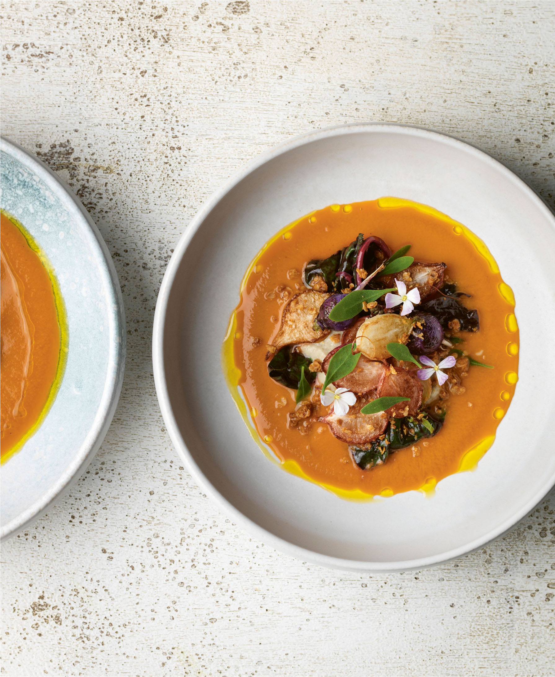 This is one for lovers of aniseed flavours – like me. The combination of fennel, sweet cicely and star anise packs an aniseed flavour punch against the sweet, delicate flavours of the langoustines and cream sauce. The whitecurrants are a lovely addition when in season as they add little bursts of sweetness and freshness. The recipe makes more oil than you will need, but it keeps in the freezer or for 3–5 days in the fridge – it might discolour over time but it’s still fine to use.