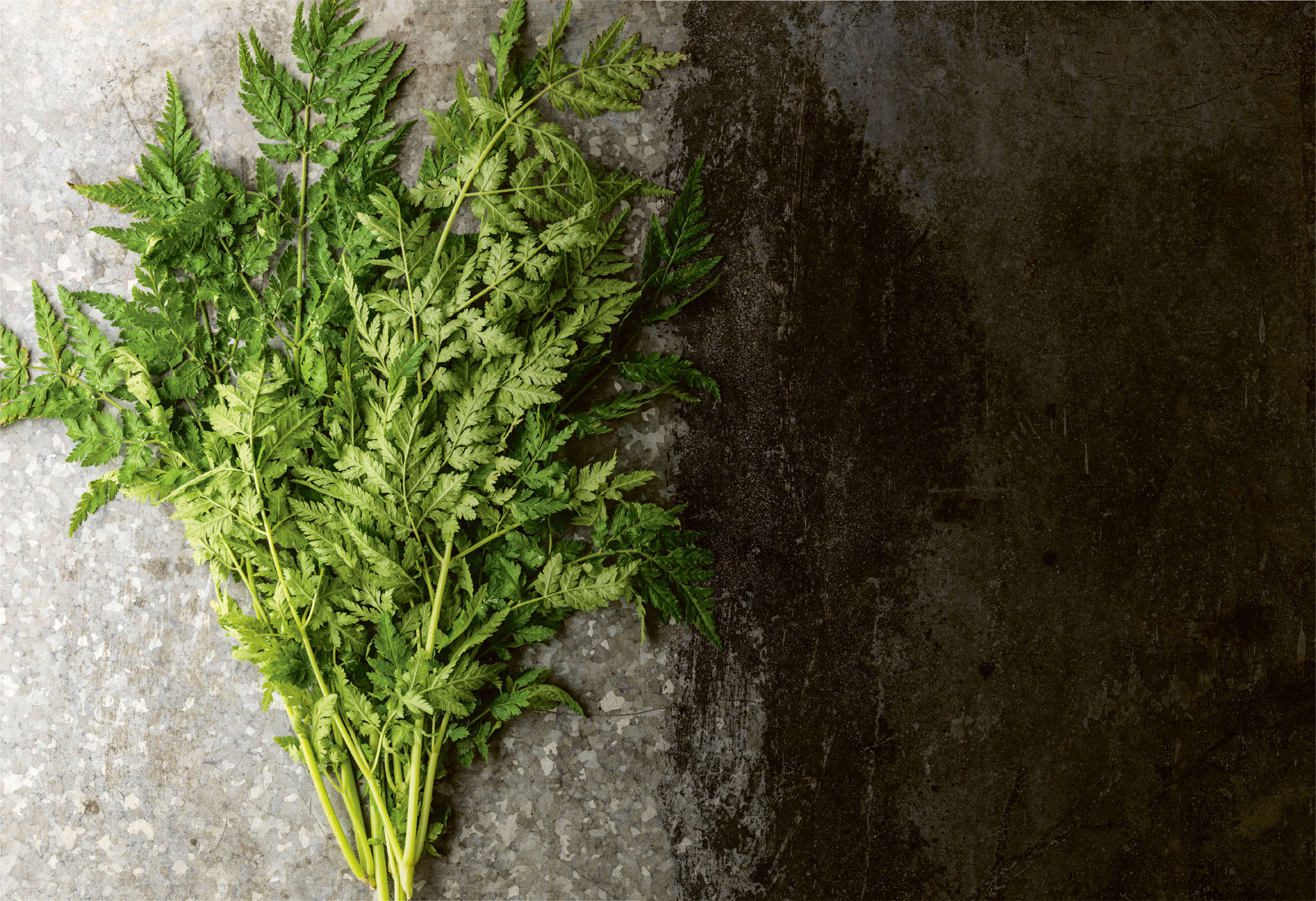 Rhubarb is a versatile ingredient that shouldn’t be kept only for desserts, as its sharp tang works so well with meats and strong-flavoured fish. In order to really absorb the full flavour of the rhubarb, cicely and spices, the herring needs to be marinated in the pickling mixture for 24 hours. Here sweet cicely is in its element, not only lending its aromatic flavour to the dish but also cutting through the oiliness of the herring and adding a natural sweetness to the pickle.