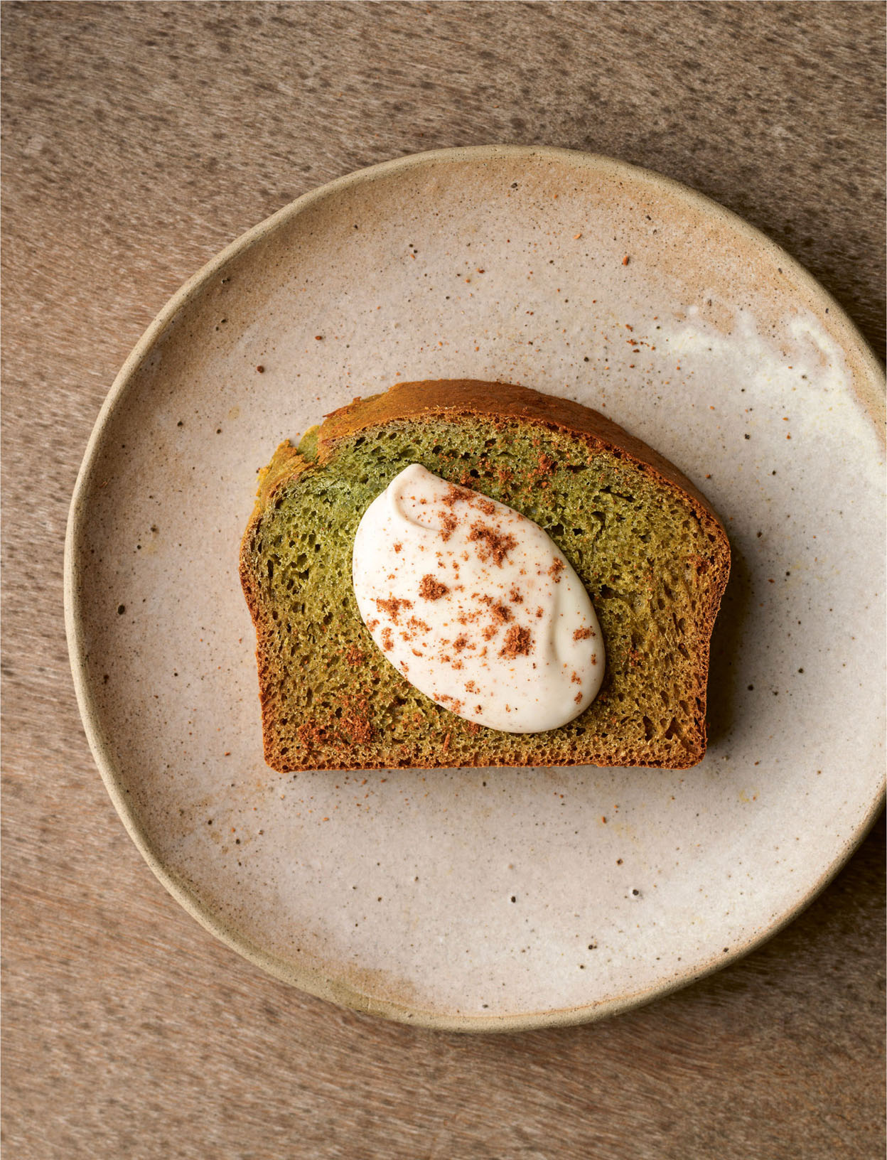 To make the cake, blitz the milk, eggs, honey and sweet cicely leaves in a blender until the mixture is bright green and smooth. Sift the flour, baking powder and ground star anise into a bowl. Fold the wet ingredients into the dry, transfer to the loaf tin and bake for 45 minutes, or until a skewer inserted into the centre comes out clean. Remove from the oven, leave to cool in the tin, then turn out on to a wire rack to cool completely.