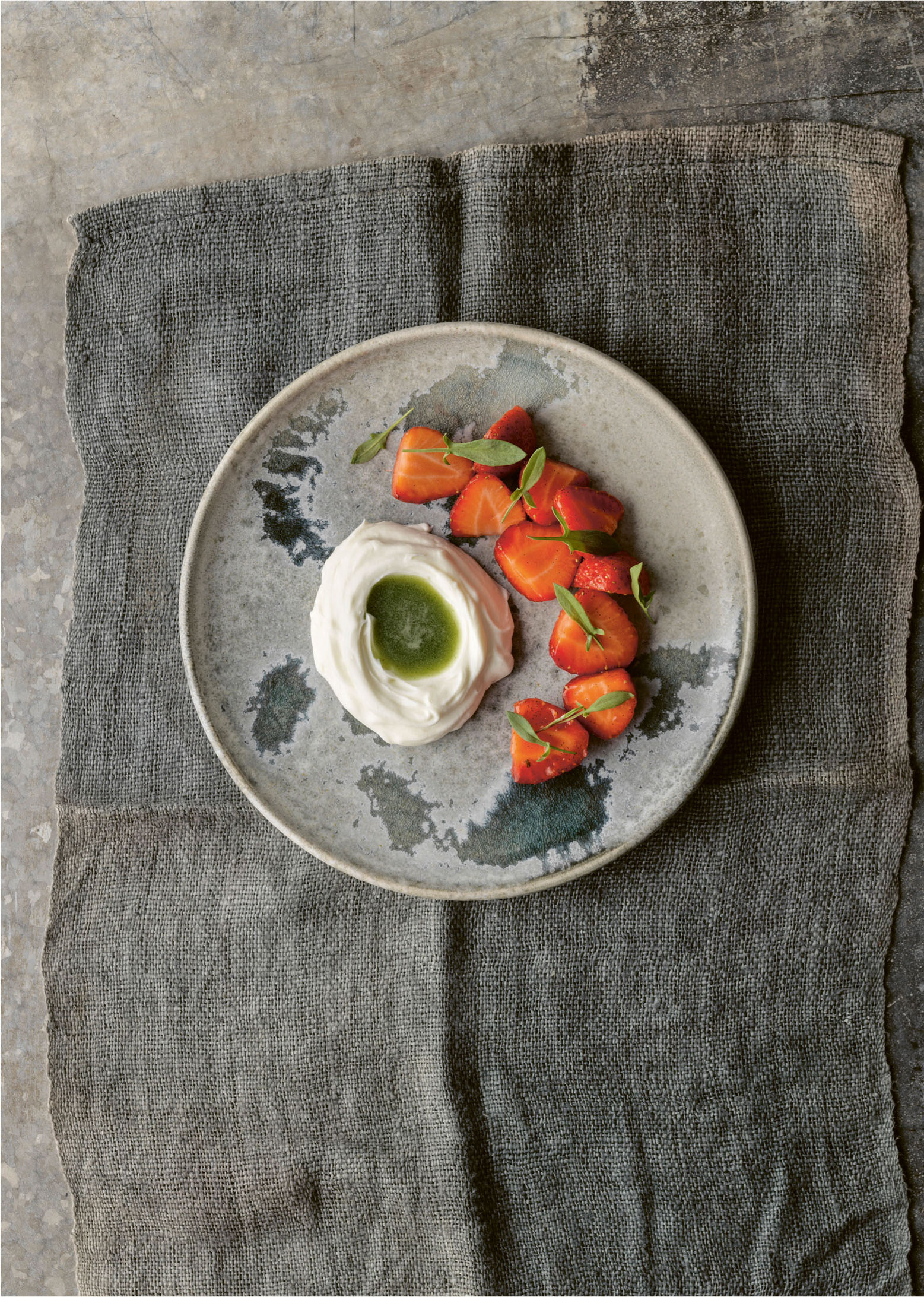 STRAWBERRIES WITH SWEET CICELY SYRUP AND SHEEP’S YOGHURT