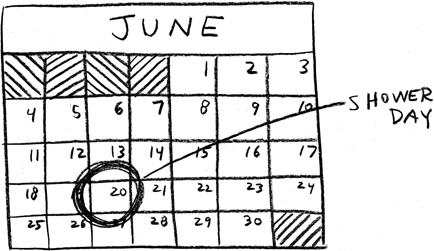 Body hygiene, now that’s a different story. I believe in being very clean and sweet smelling all the time. I live by one hard-and-fast rule: I shower once a month whether I need it or not.