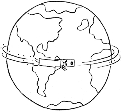 Karen said, “I actually ran in the exact opposite direction. Yeah, that’s what I did. I circled the planet on the exact opposite path and – shazam! – here I am.”