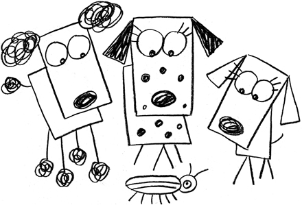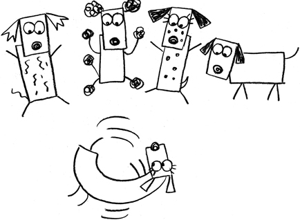 So the dogs didn’t follow Stick Dog’s instructions even though they’d agreed to do so. They simply tore after him to Picasso Park to look for a Frisbee. When they got there, Stick Dog turned around and asked, “Why are you all following me? We were supposed to run in different directions.”