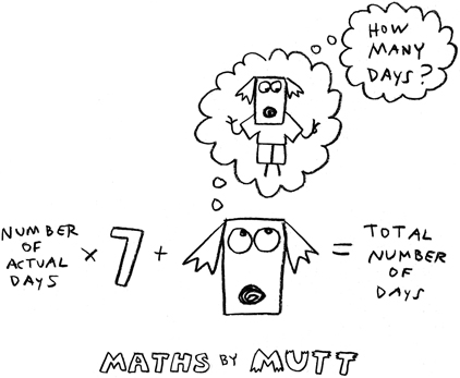 “Well, dogs typically live about one-seventh as long as humans. So one dog day equals seven human days. The day before yesterday was two days ago to us – that equals fourteen human days. I can’t remember that long ago,” Mutt explained. “I always measure time that way. It’s easier.”