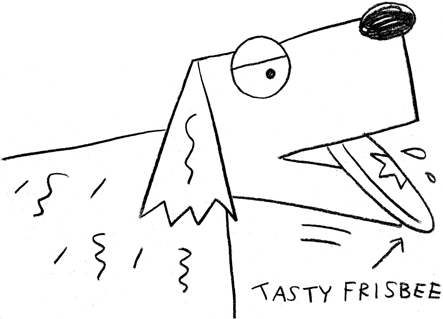 “Mm-hmm. I’m sure that’s true,” replied Stick Dog. “Now, who can tell me the most important thing we need to play Frisbee? Besides our mouths and tongues, I mean.”
