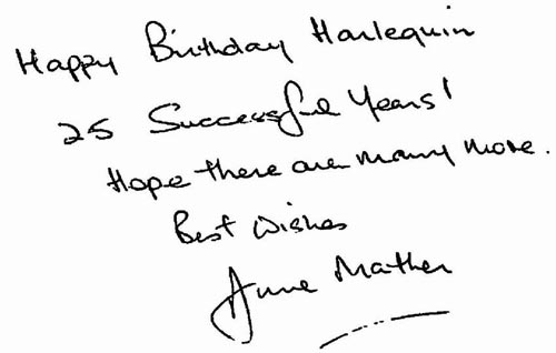 What a good opportunity to write a few words to thank you all for your support over the years. I have been writing for Harlequin for nine years and it still gives me great pleasure to think that my books are enjoyed by you, I hope, as much as I enjoy writing them.