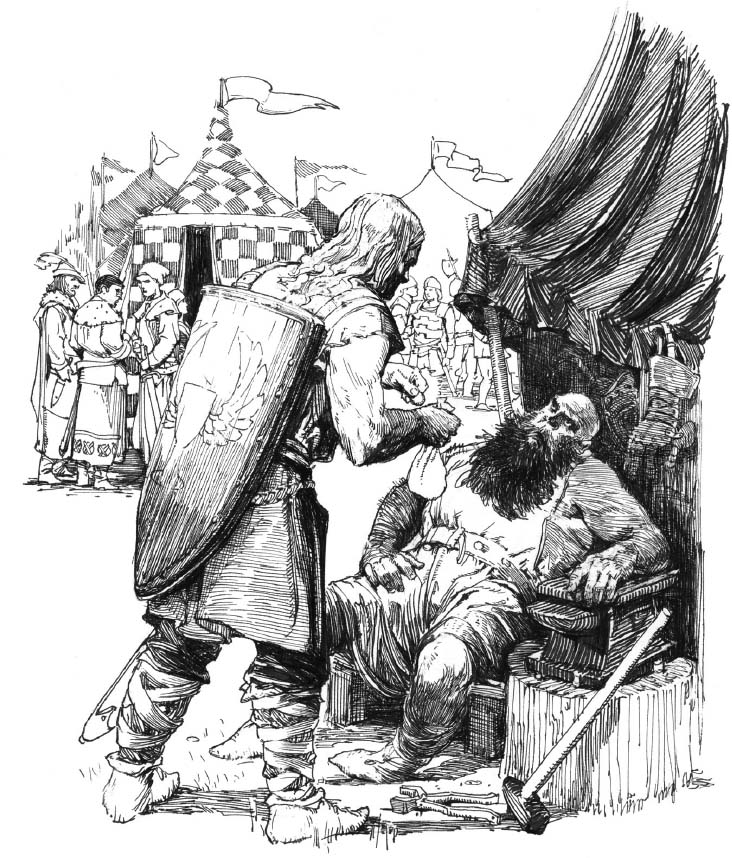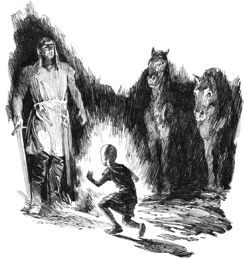 He burst out roaring and cursing, only to jerk to a sudden halt at the sight of the boy beside the campfire. “You!” He lowered the sword. “What are you doing here?”