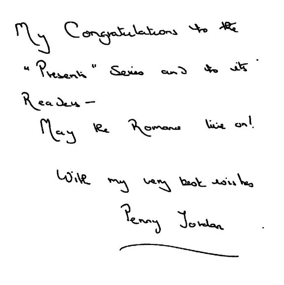 I’m delighted to be part of the twenty-fifth birthday celebration of Harlequin Presents®! My very first Presents was published twelve years ago. Since then, I’ve had the pleasure of meeting some of you and of hearing from many others. You and I have a lot in common. We both love exciting heroes, strong heroines and stories that make us laugh and cry. My warmest thanks to you for enjoying my books, and my best wishes to Presents. May we all celebrate many more birthdays together!