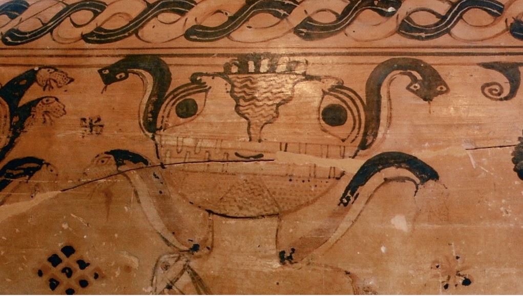 Tav.5 Una delle sorelle di Medusa, anfora protoattica da Eleusi, Pittore di Polifemo, 670-650 a.C., Eleusi, Museo di Eleusi.