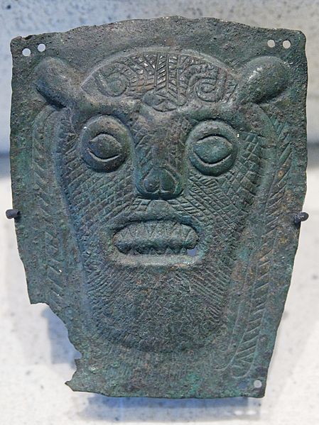 Tav.4 Applique, gorgoneion. lastra di bronzo con decorazione repoussé, fine VII secolo a.C., dalla Kabeirion di Tebe.