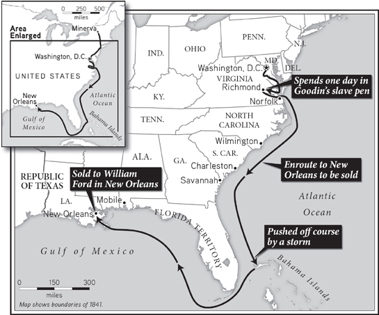 From Washington, D.C., Solomon was shipped to New Orleans, where he was purchased by William Ford. (Illustration Credits 1.9)