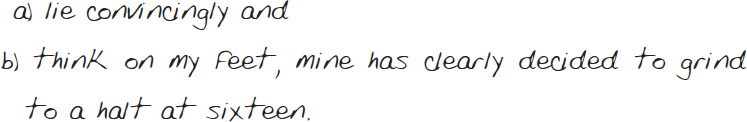 Grumbling, I switch my phone off and start scuffing my trainers along the pavement.