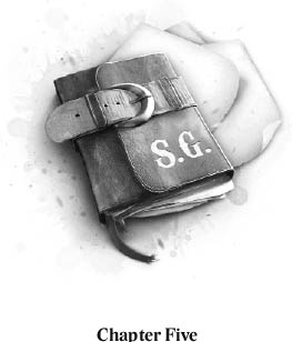 I wriggled my way out from under the bed and hastily tried in vain to brush myself off. Then I sat up, leaning against the cold frame, and stared at the book in my hands. It was brown and shiny, and the letters ‘SG’ had been carefully scored into the cover.