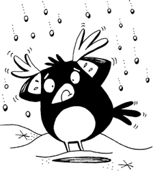 “Help me, Blue!” he pleaded as Oo-Chi sat on him and Ku-Chi rubbed snow in his head feathers.