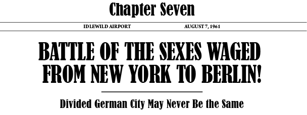 Devin had told her they were booked on TWA, so she went to the Pan Am counter. Better not to run into him on the plane. But Pan Am’s flight straight to London had already departed, and they confirmed that all the direct flights to New York were sold out, so she settled on a plane change in Chicago. It didn’t get her to New York in time to see a Broadway show, but the agent did help her call ahead to get a room at the Waldorf-Astoria that night, with a flight to Berlin the next morning.