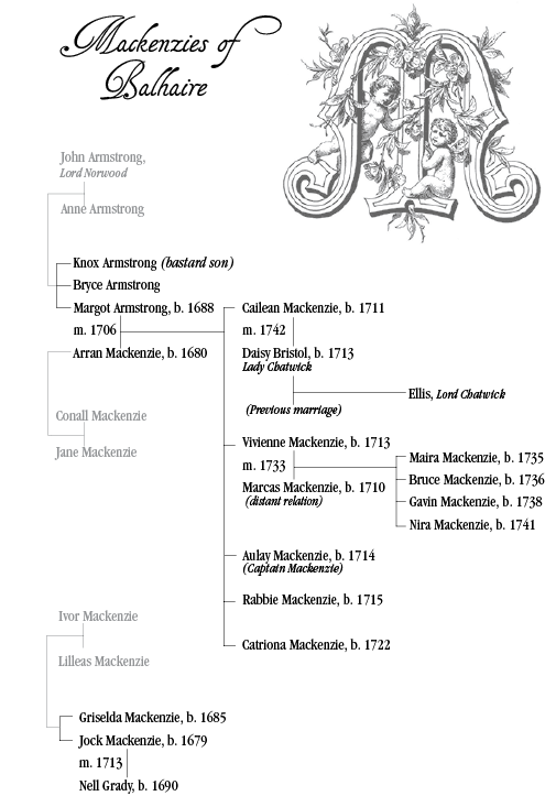 There was no word Rabbie could say—he was trapped like a mouse behind a door with a cat waiting on the other side, no way out but death. If he didn’t marry this woman, her father, who had bought Killeaven from the crown after the Somerleds had deserted it, would buy up lands around Balhaire, including those that had been abandoned by Mackenzies that had fled. Lands his family could not afford to purchase from the crown, not with their sea trade cut in half, their smuggling brought to a halt by war and the fact that there was no one left to buy their goods.