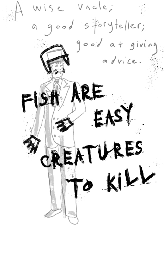 “Technically, I’m older than you,” I say. I created Gill when I was nine, which only makes him seven years old.