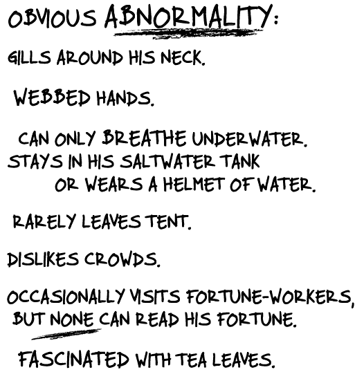 I scream and then root around my pockets for a match, my hands trembling. I find one, strike it and bend down to the man’s body, bracing myself for my worst suspicions to be confirmed. I instantly recognize his dark hair, the grooves on both sides of his neck and his webbed hands.