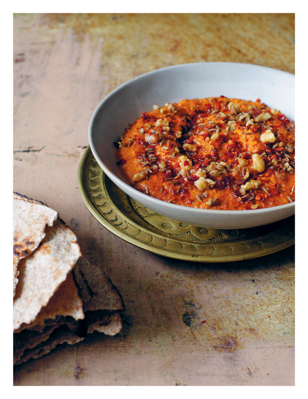 If there is someone in your life who thinks vegetarian food is bland, hand them a bowl of this and some charred flatbreads and give them 5 minutes. It’s a riot of flavours: musky sweetness from the peppers, earthy spice from the cumin and buttery depth from the walnuts. And it’s so versatile. I keep a jar of it in the fridge for spicing up pretty much any meal.