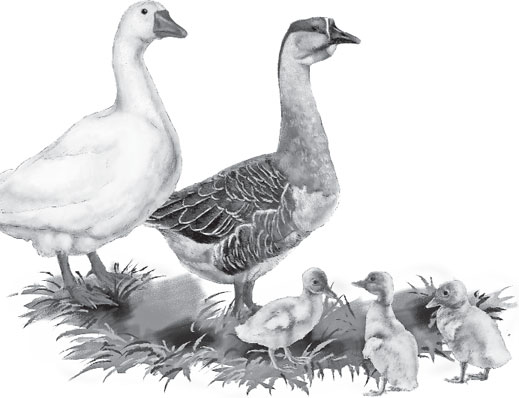 Гуси – это птицы, которых держат в хозяйстве в основном для получения мяса. Самцов называют гусаками, а самок гусынями. Птица это крупная, и обычно их откармливали к какому-нибудь большому празднику, чтобы накормить всю семью и гостей. В среднем взрослый гусь весит 5–6 кг, но есть породы, представители которых достигают 10–12 кг.